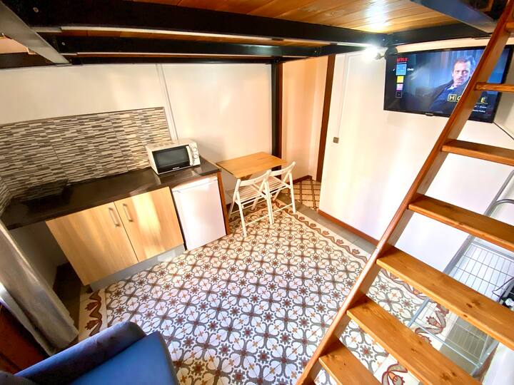 Estudio con balcón y aire acondicionado nuevo que en estos dias ya me lo dejan instalado.